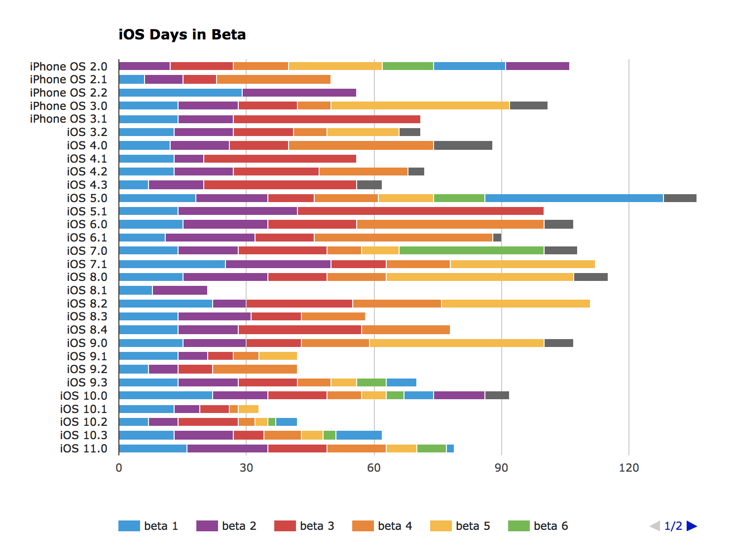 I'm just curious. How many betas do iOS versions usually have? For some reason, 7 seems like a lot to me. Does anyone have a list of all the beta versions throughout iOS? Wikipedia doesn't seem to document this, to my surprise.