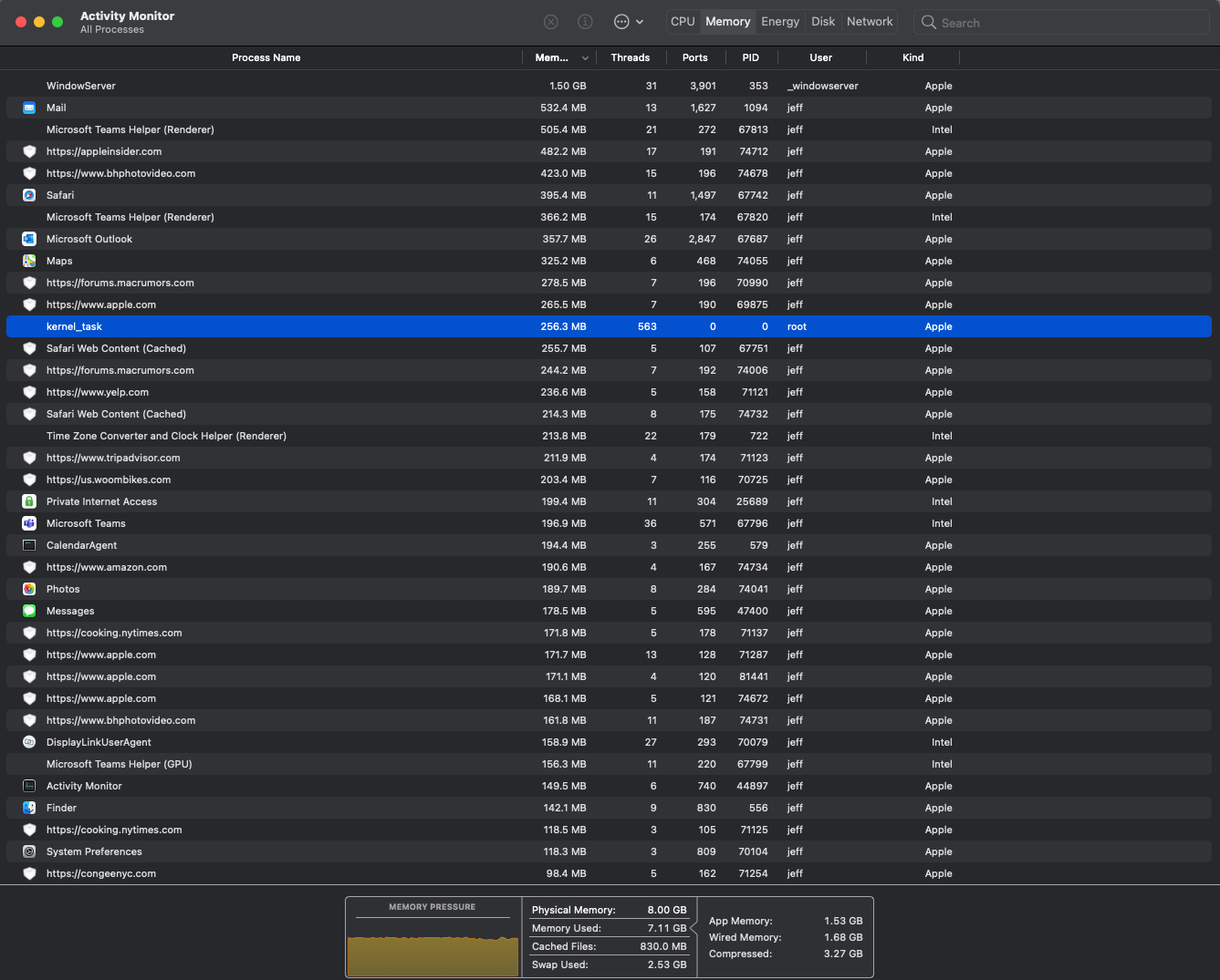 I currently have my M1 MBP with 8GB memory hooked up to a dock driving 2 external displays (using displaylink manager) as well as the laptop screen. I typically do office work, so multiple docs open in Word, powerpoint, etc, Outlook and Mail, 5-10 tabs open at any time (including sharehopoint), Remote Desktop app, Teams and Zoom. Occasional Photos and FCP (although if doing this for any length of time, would typically close out all the other apps).