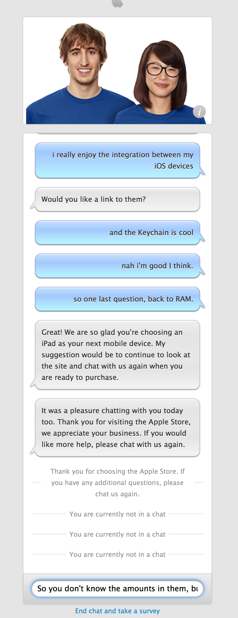 Here's how I see it.... Apple gave all sorts of specs last week, but failed to mention the RAM for iPads. They mentioned the measley 4GB of ram on the base MBP, but nothing for the iPad would indicate that it won't be impressive. That doesn't mean the tablet won't be good, but does make you wonder what's up.