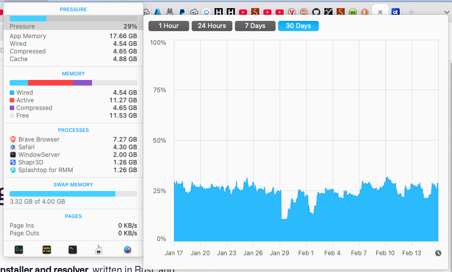 Note that since you show a history of keeping a Mac for at least 7 years with your 2018, a part of this decision is not looking at your RAM graphs now and then rationalizing only a modest amount more. Instead, you need to try to add into the consideration how much RAM you will be using in 2032, assuming you'll keep this Mini for as long as you've been using the 2018. Why? Because you can't add RAM later.