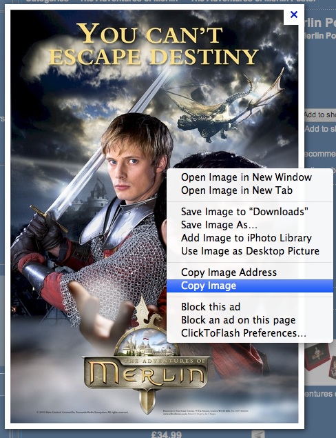 Step 2: Go to Google image search, or wherever you get your poster artwork from, and right click on the image you want and select "Copy".