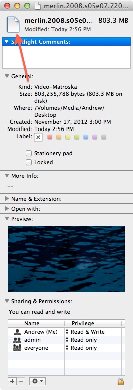 Step 3: On your .mkv file, do a "Get Info" command and highlight the icon by clicking on the area shown.