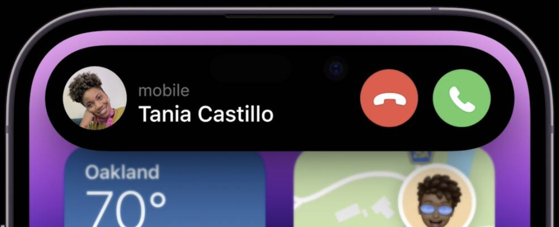 When making an Apple Pay payment, for example, the Dynamic Island expands into a square shape to match the Face ID confirmation interface, and while on a phone call, it expands to be larger so you can have the phone controls front and center.