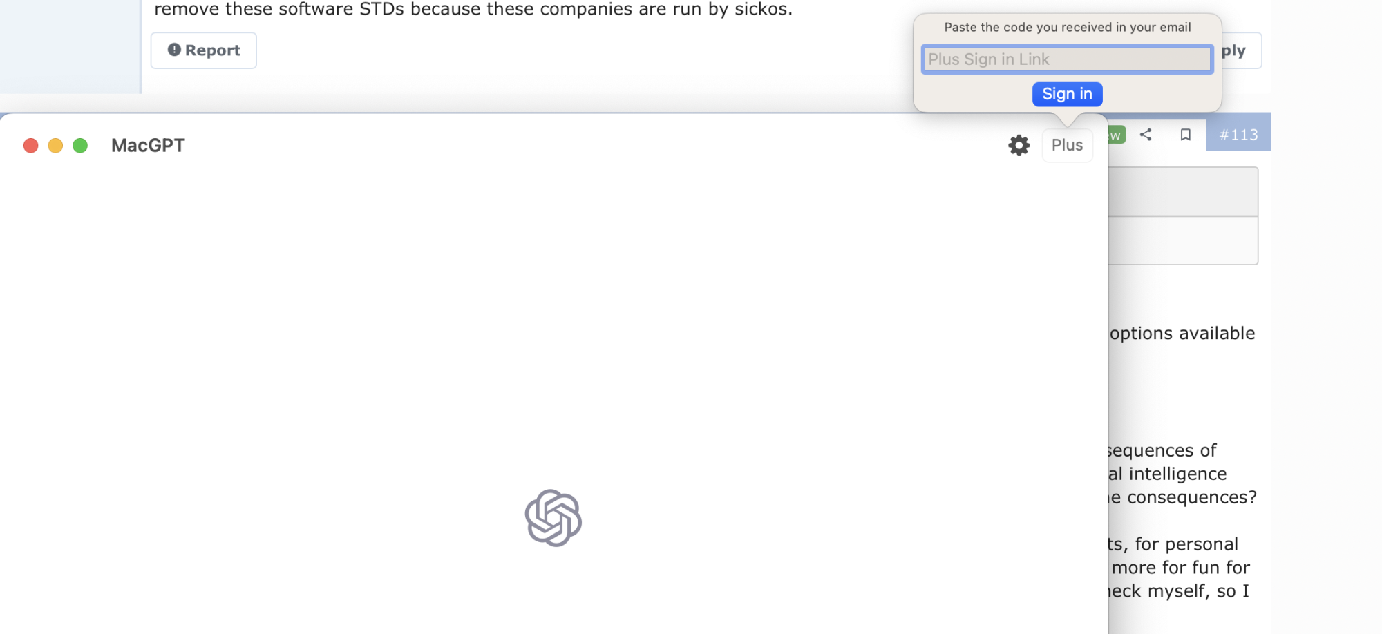 I have downloaded the MacGPT app, but is showing an empty dialog, and asks for a sign in link, which I do not have.
