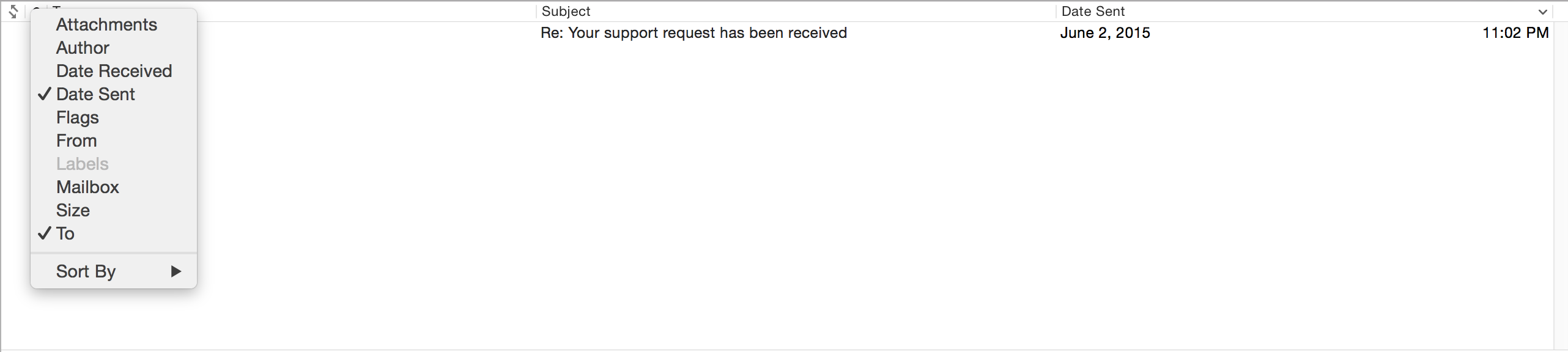 T telecarver1 macrumors newbie Original poster Jan 10, 2010 18 0 Jul 27, 2015 #1 I can't figure out how to view "to" in the apple mail window. The choices are: from, subject, date sent and date received but no "to". When I had snow leopard I could view messages by "to" also. Does anyone know how to add this choice?