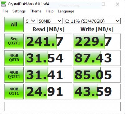 Ran CrystalDiskMark on the SSD in IDE mode. Speed seems fine for a SATA 2 drive.