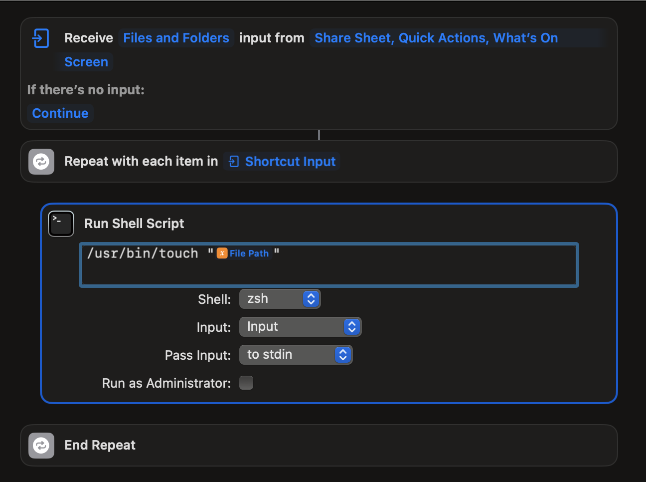 So i tried to make a Service with FinderPop´s Touchfsel-!!!.sh.