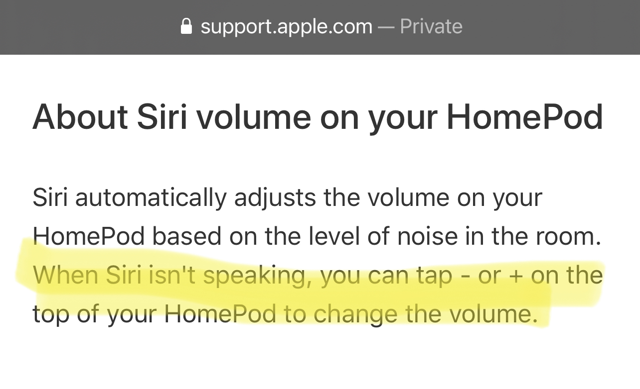 Music levels can also be adjusted using the - and + buttons on the top of the HomePod or through a connected iPhone or iPad, but adjusting Siri volume specifically seems to require the spoken command.