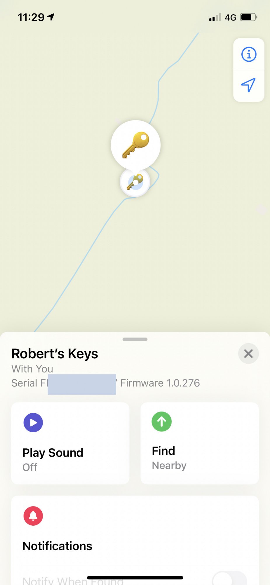 - In this view, tap on the name of the AirTag to see the current firmware version.