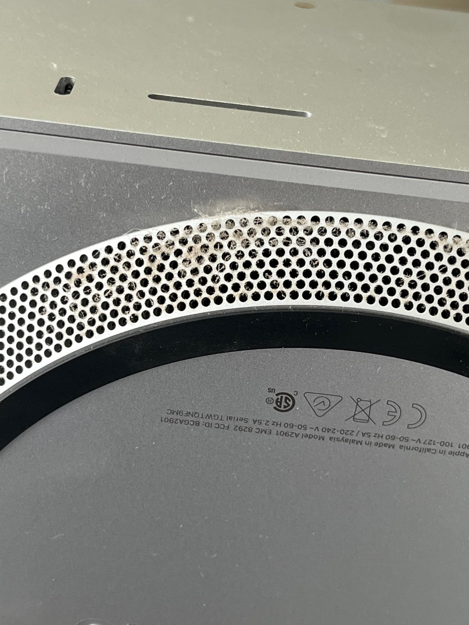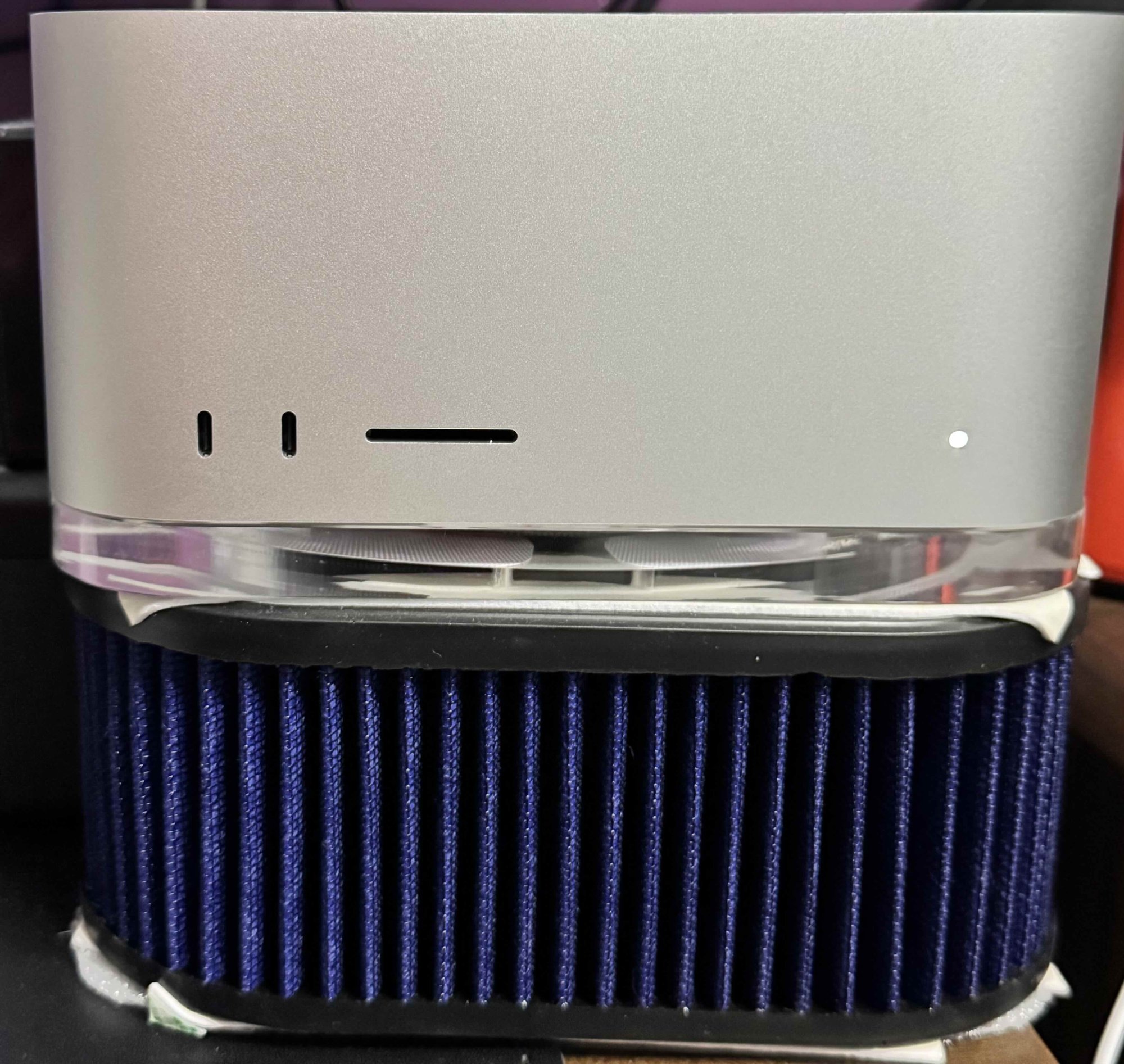As a conclusion, I think the Spigen with no extra filters is the best solution. I agree the Spigen holes are too big for effectively filtering dust, but by adding a effective filter you are stressing the fans. The Spigen holes, even if they are big, it's worth of mention that you actually have the holes of the Mac Studio, so these two grills which are in contact, I believe will have a good effect in reducing the accumulation of dust inside the machine, so I think it will take more time to notice performance degradation due to dust if you use a Spigen, and I believe it's beneficial. But, as