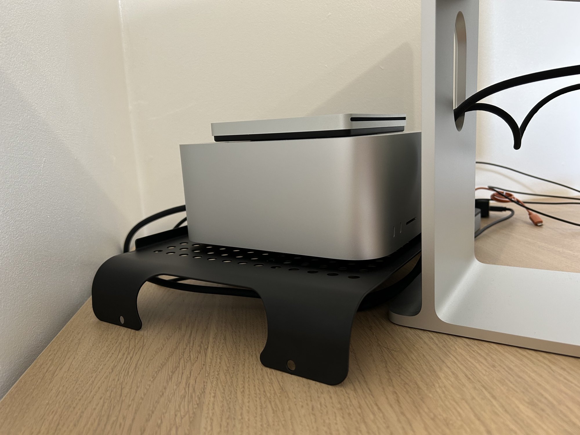 The link below is a post by a talented Croatia product designer named Gjuroo who designed an air filter cabinet that fits beneath the Mac Studio/Mini. Follow the links to purchase the 3D printer files ($20), choose your cabinet color, print the files ($40) and add the Uni filter ($20) or suggested automobile cabin filter ($10).