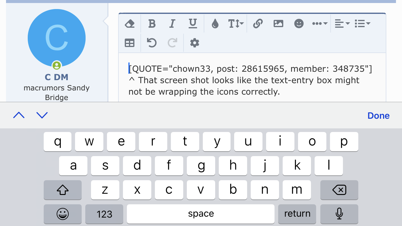 ^ That screen shot looks like the text-entry box might not be wrapping the icons correctly.