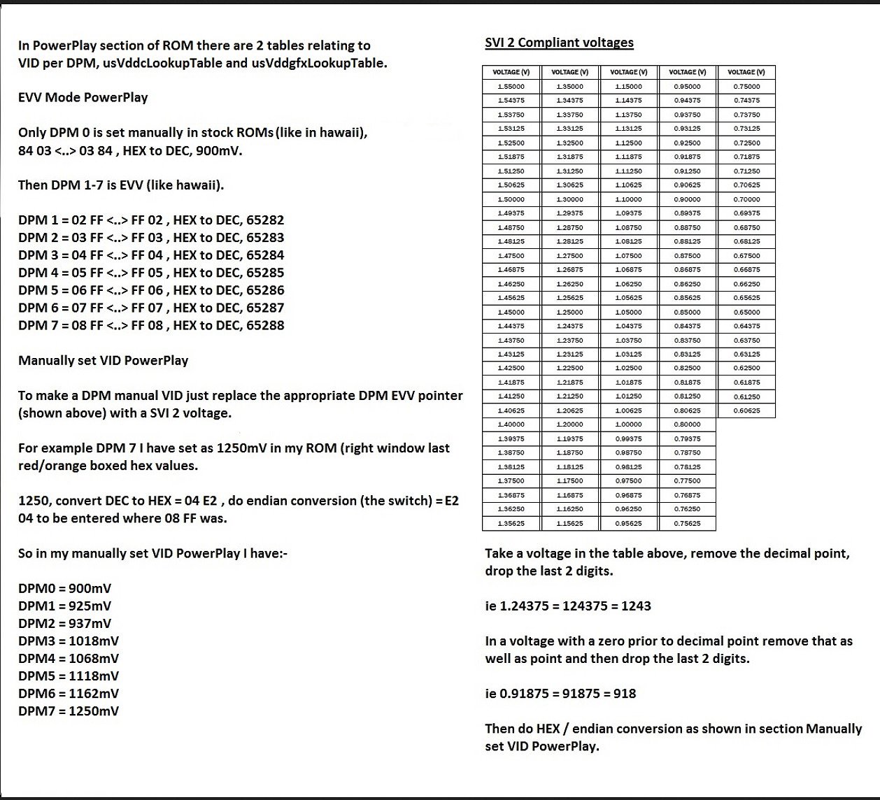 since i had problems with the old PowerPlayTable i'd like to give these changes a try!Just did some tests about 1645MHz @901mV (HMB2 @1100MHz). Suprisingly a nice setting to use. Still able to get 50000 in Luxmark. So, virtually no performance penalty (compare to the original factory setting).