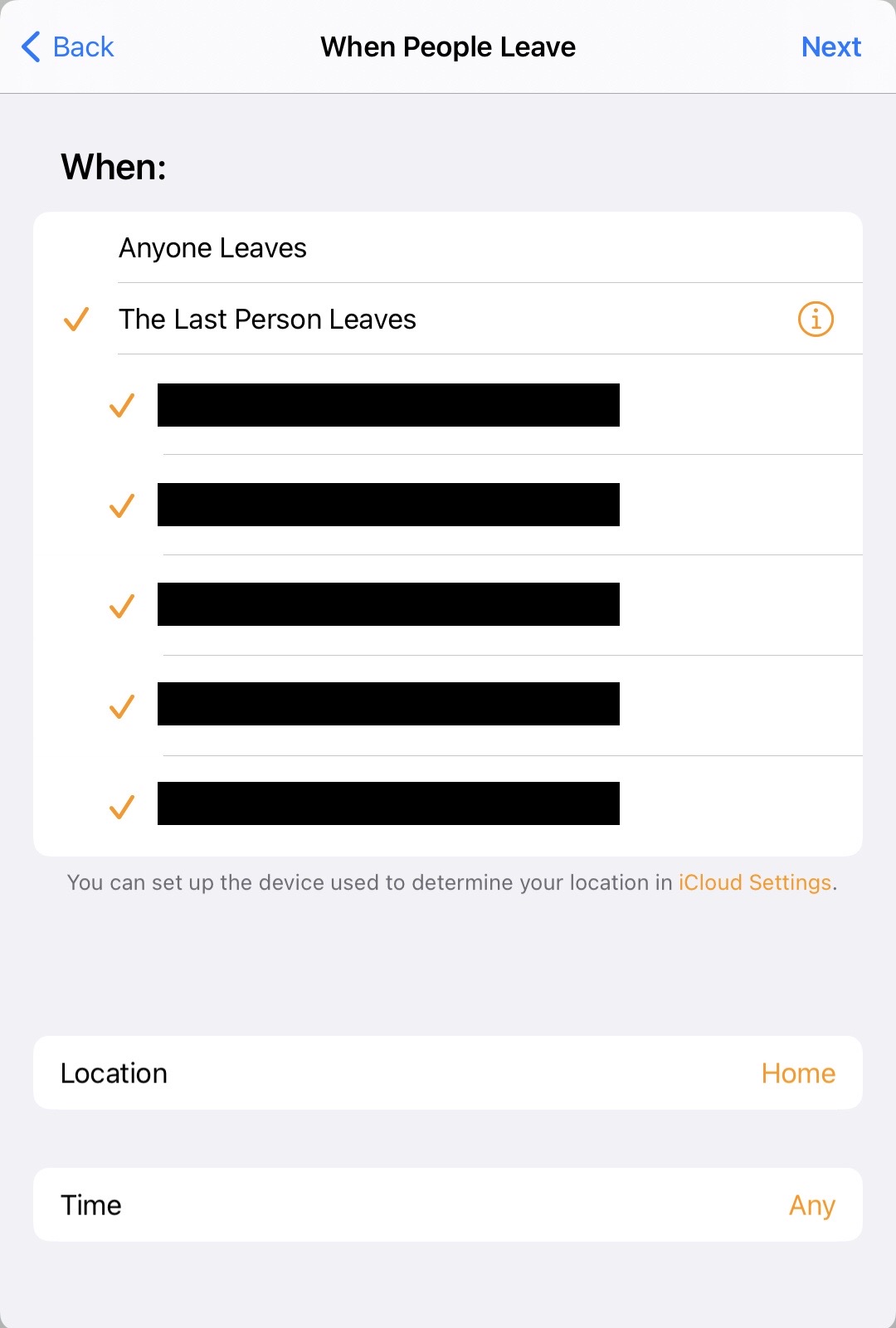 That iPad is "always home". So the "when last person leaves" or "when no-one is home" automations never trigger, because even if "person 1 with iPhone" and "person 2 with iPhone" both leave the house, "Person 3 with iPad" is still at home.