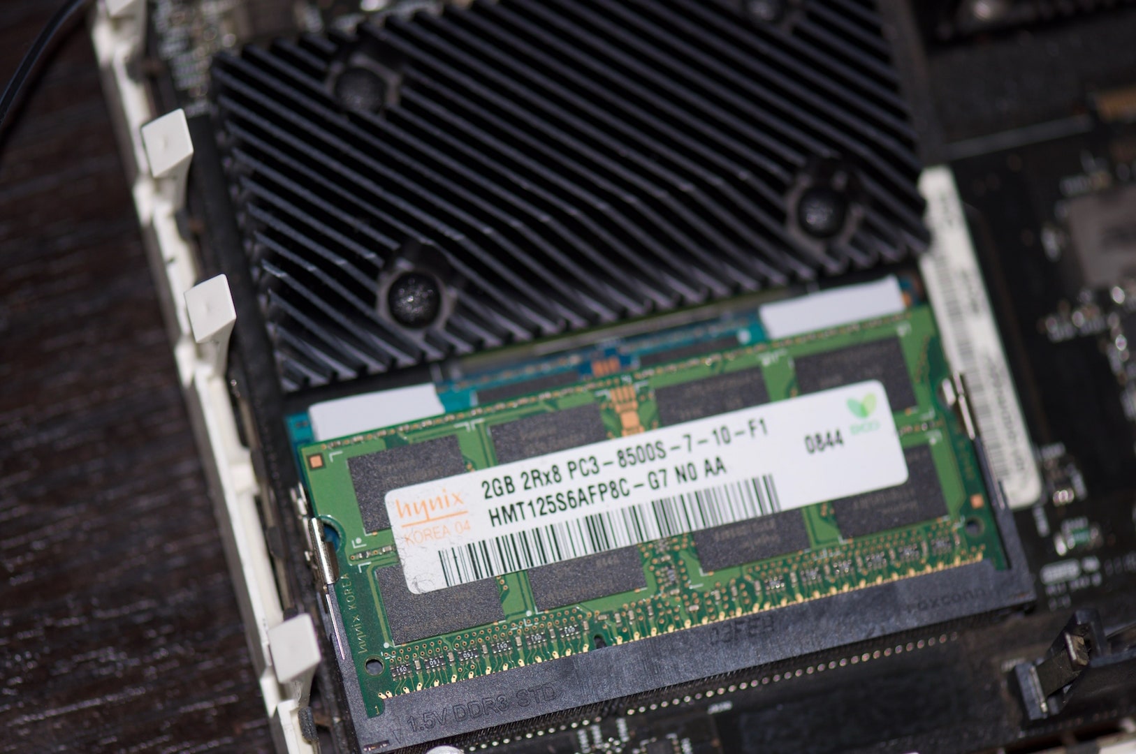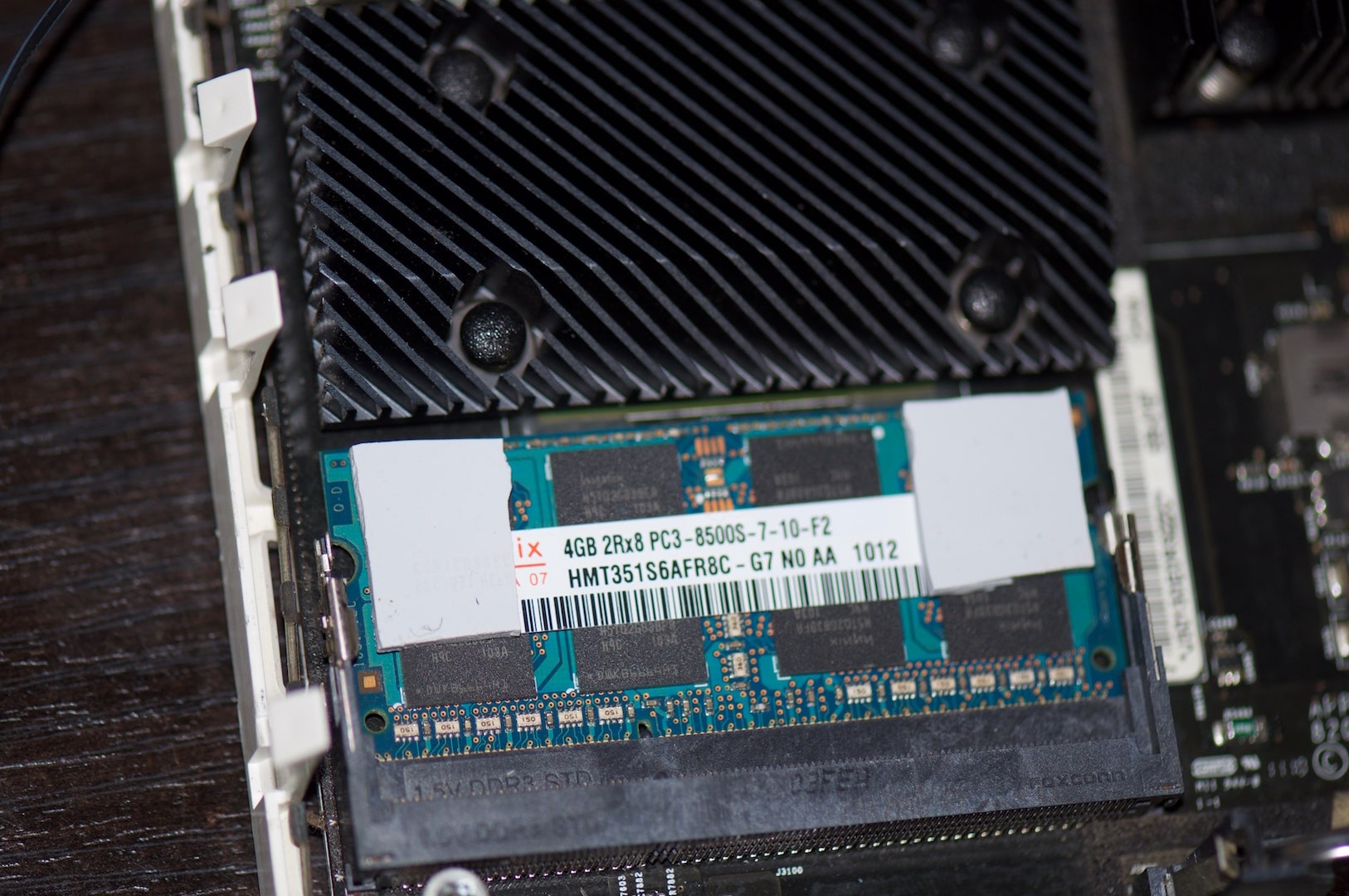 I did some research and came across some reports of people adding pressure to the modules (in later model minis), which could improve the module contacts. So, I tried padding the RAM out with a couple of off-cuts of 2mm thick thermal padding between the sticks of RAM, ensuring a snug fit when the top module is pushed into place. Sure enough, the mini fired up with a happy boot chime again.