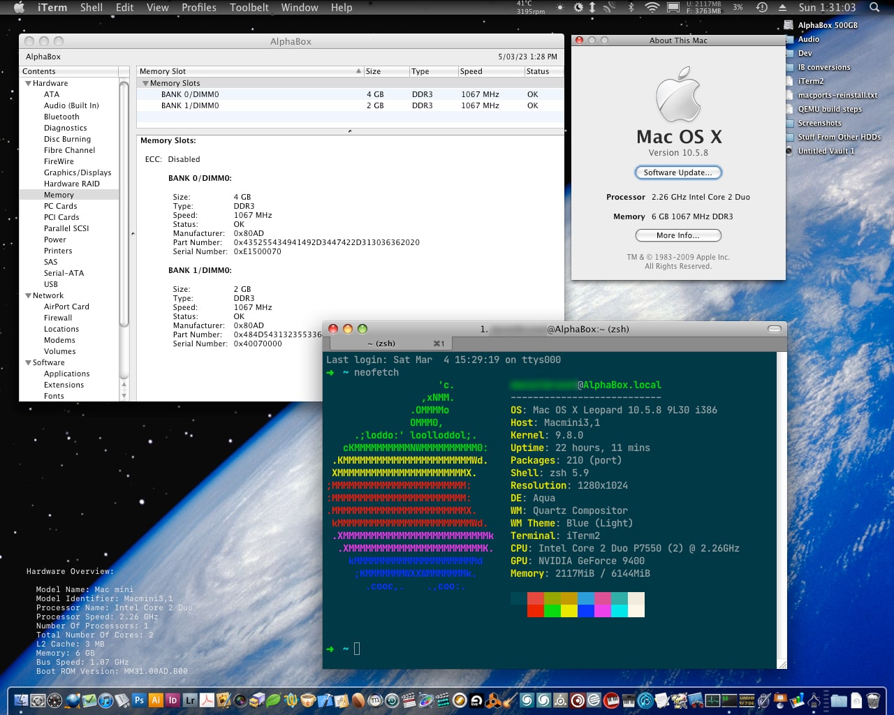 We now have a happy mini with plenty of RAM, tons of performance (for Leopard) and lots of software to enjoy.