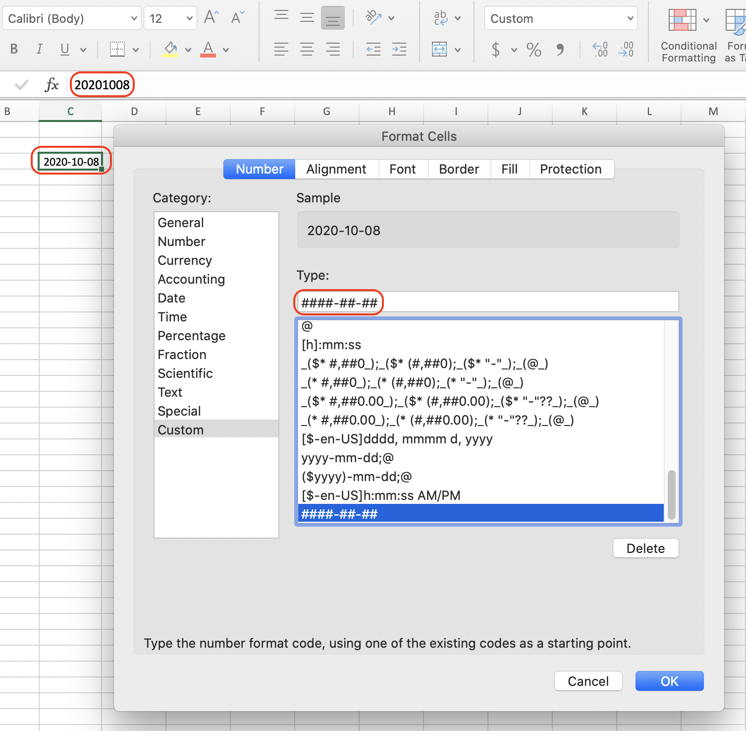I want to type, say, 20201008 or 201008 into a cell and as soon as I press