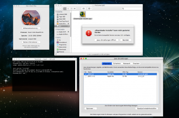 So open the /System/Library/Frameworks/JavaVM.framework/Versions/1.6/Resources/Info.plist and replace the contents with the one I uploaded. Basically we're copying in a bunch of metadata from the official 1.5 version. This will let it be "seen" by the Java Preferences. But of course this isn't sufficient. If one runs a Java application, it won't launch.