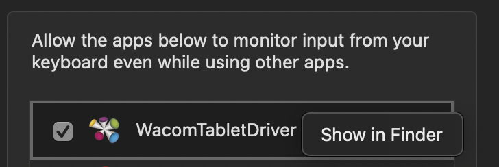 Next go to Input Monitoring and do the same thing with WacomTabletDriver.