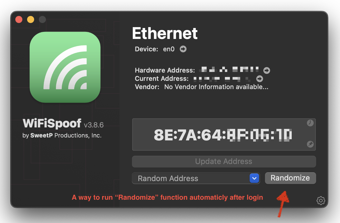 Any time you start the created app, the MAC address for Ethernet en0 will be changed to a random one.