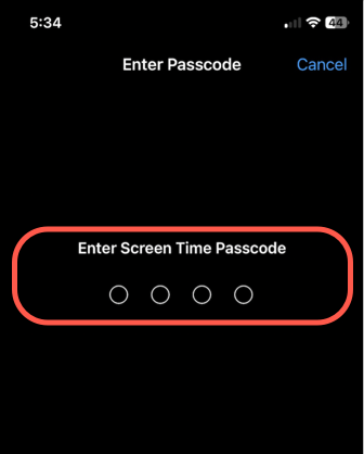 When someone (including myself) tries to undo this in Screen Time, I'll have to enter the passcode.
