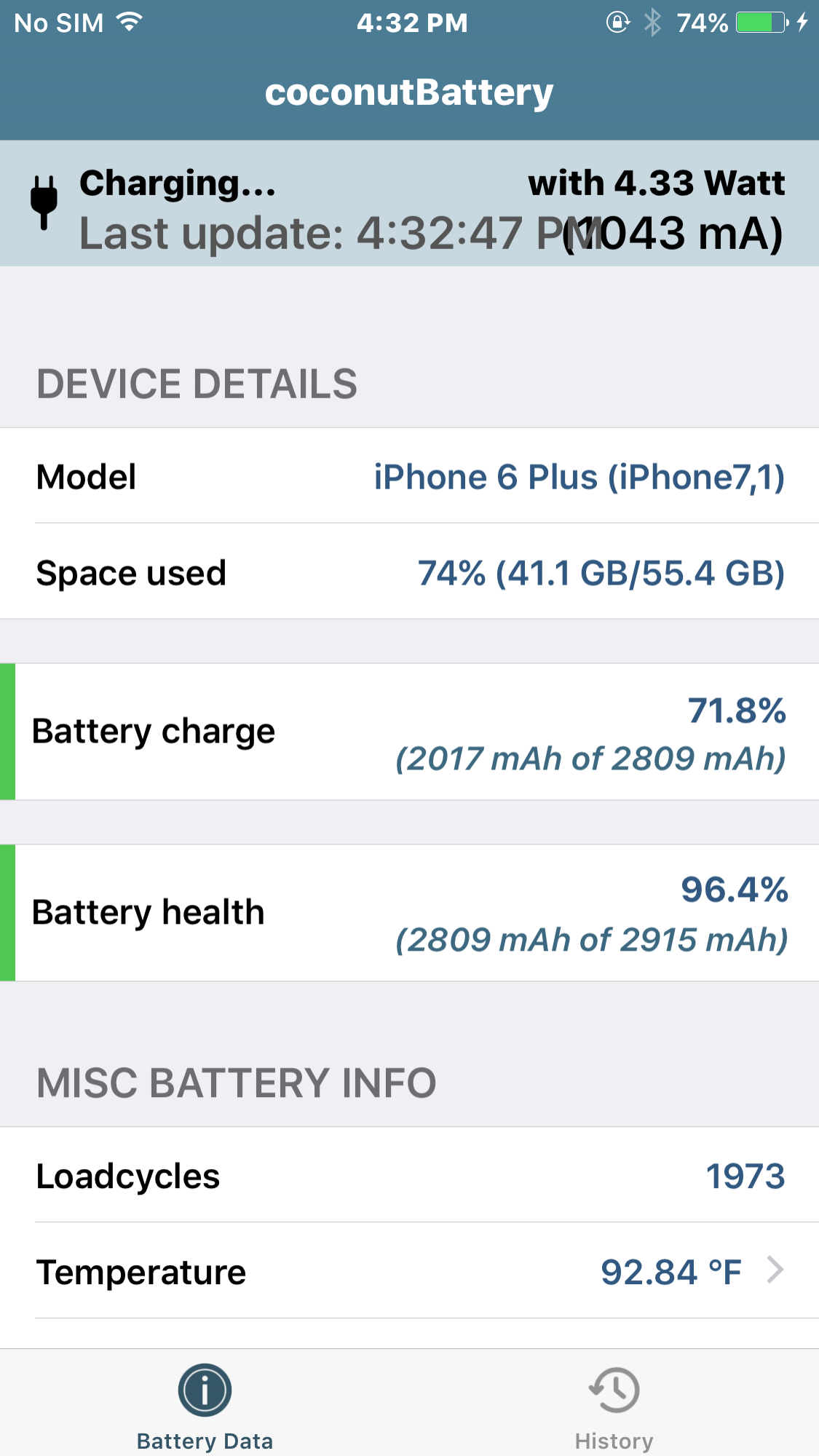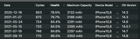 Yeah. I won’t go as far as to say coconutBattery is inaccurate. However, how/what source it uses to pull battery info is clearly not a great one. It may be the only thing third-party apps have access to. The best way to estimate is using coconutBattery to see full charge cycles and calculate the health based on the average measured usage before reaching 80% (e.g., 500 cycles on iPhones).That’s very interesting if coconutbattery is accurate enough to be believed. Personally I’ve used it to check my iPhone 6S and it had about the same cycle count as you but around 72% battery health, while the Settings app said 76%. What makes me doubt it’s accuracy is when I checked again a few days later coconutBattery showed the battery health was less than 30%?? 🤨