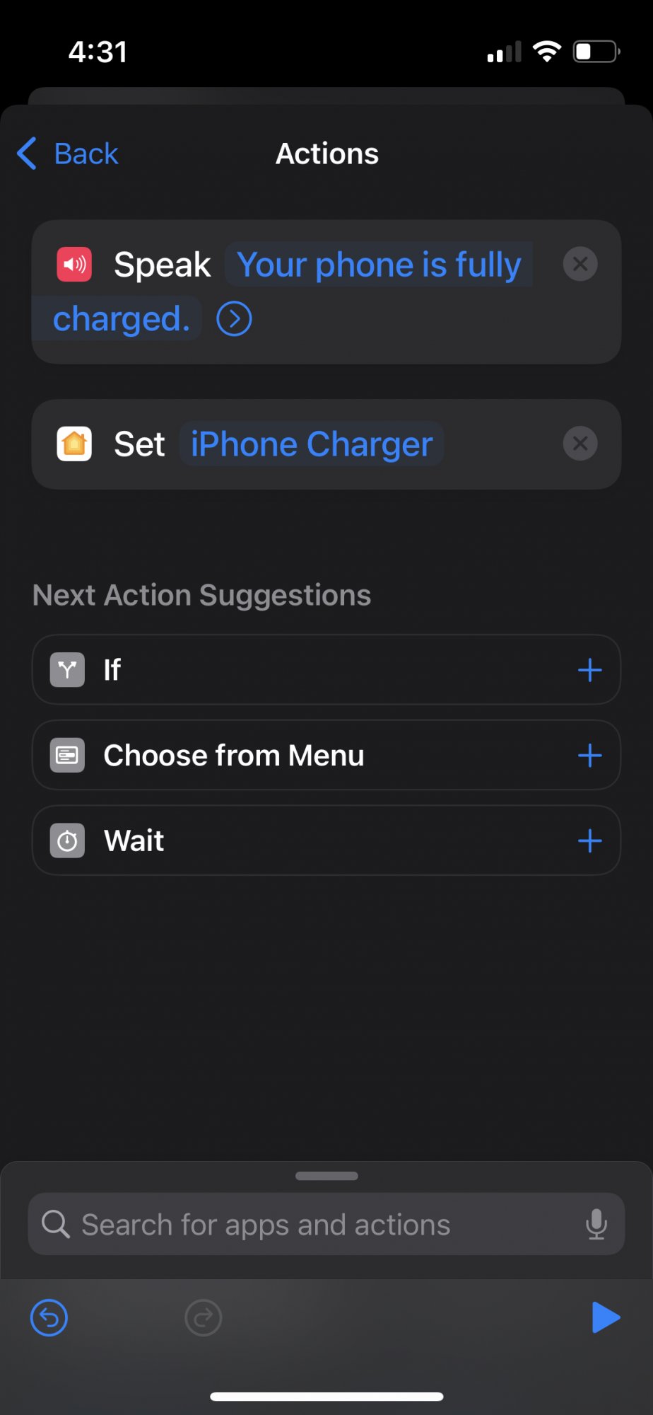 I guess shortcuts is a bit buggy on 15.0.1 as my automation didn't shut the charger off at 85% last night. Turned on fine but didn't turn off. It was working fine the night before, maybe after restarting the phone it will get it right next chargeCan you send me a screenshot of what was. In the shortcuts app? If Apple Robert can help, I will appreciate it.