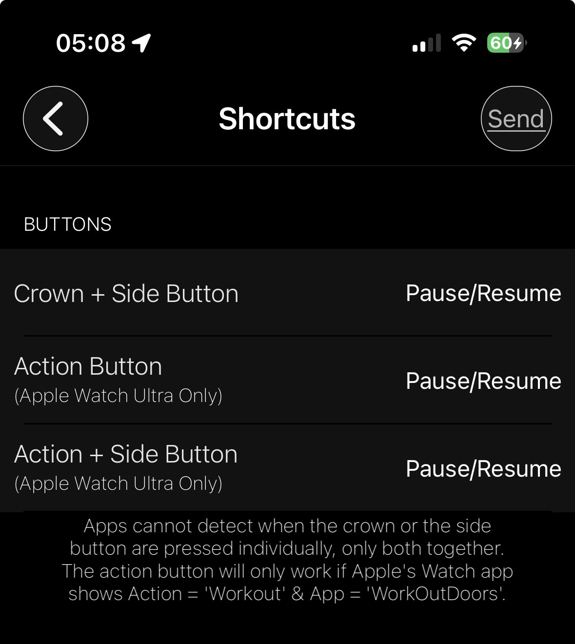 - Get back to the WorkOutDoors app and try the side buttons again. Nothing happens