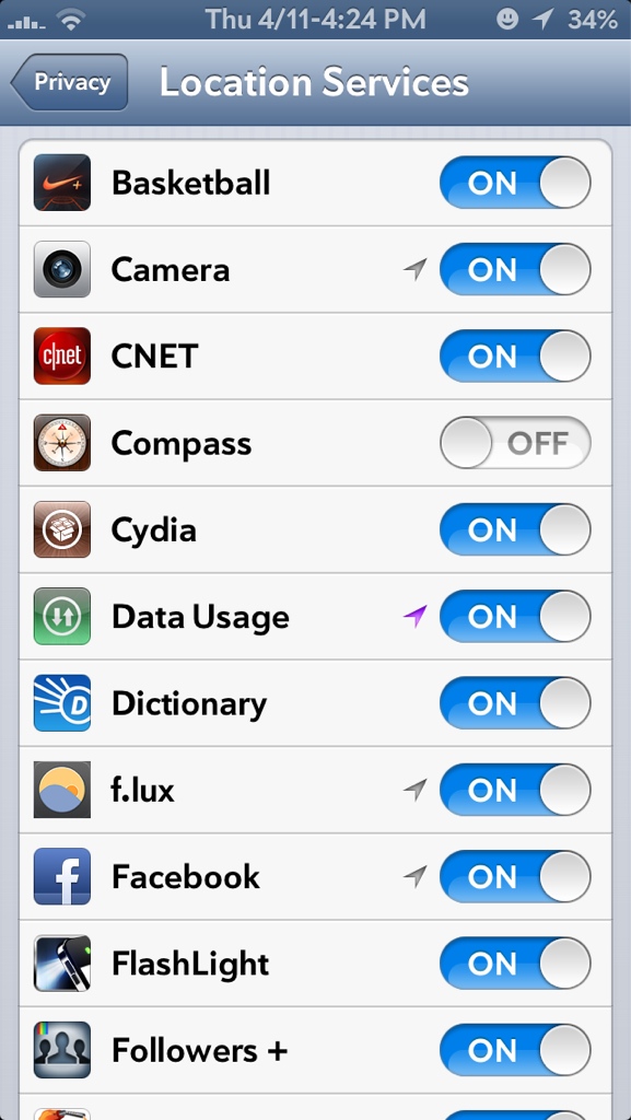 Settings > Privacy > Location Services > System Services > Status Bar icon "OFF"