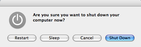 I'm a Mac convert. Just got my MBP yesterday. I have one question. When I shutdown, it asks me whether I want to sleep, cancel, restart, or shutdown. I was wondering if there is any way to select between these using my keyboard. I feel like I've tried everything. It's a small thing, I know, but it's something I've been doing on Windows forever using arrows or tab.