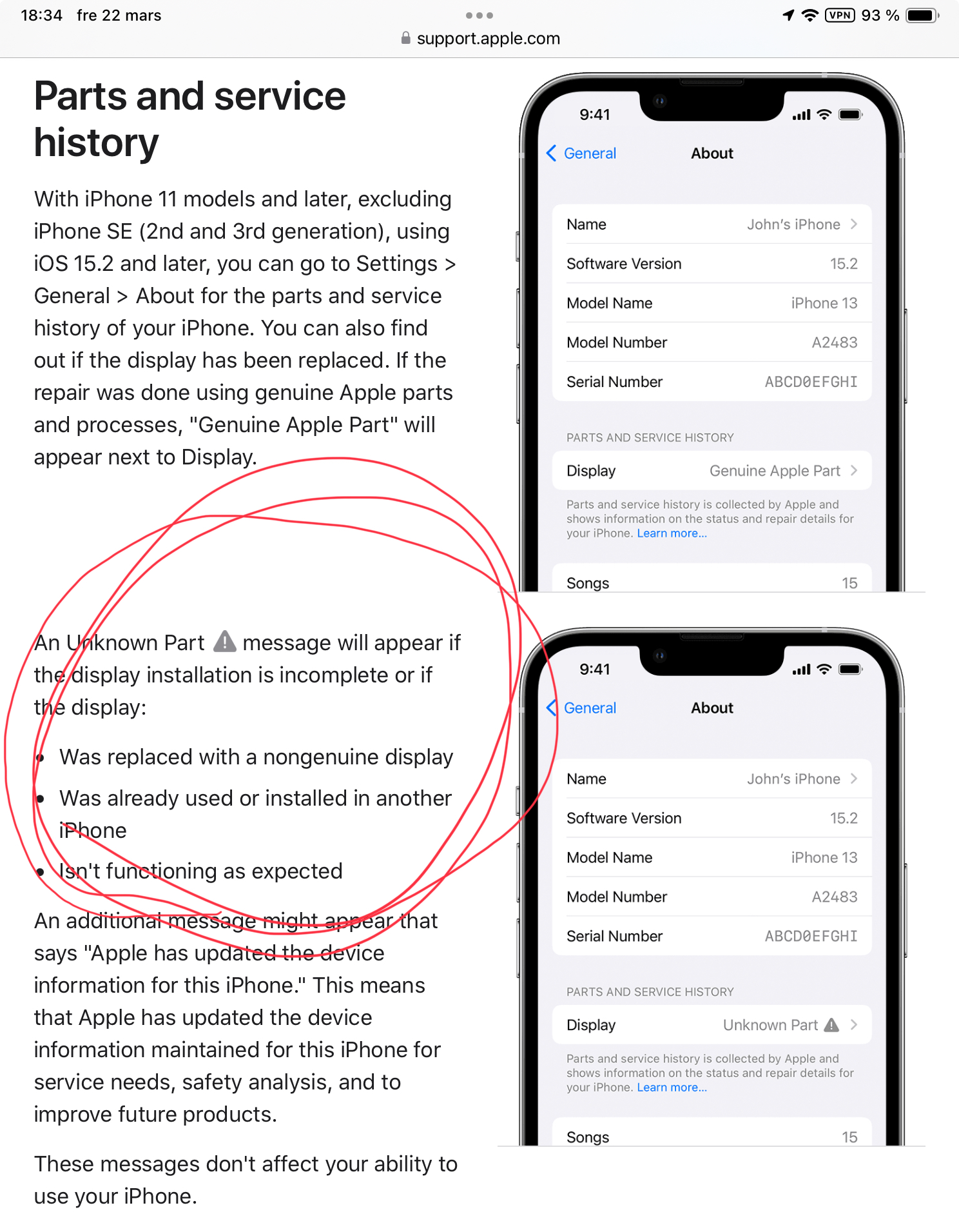 I replaced the screen on my iPhone 8 with one of those cheap digitizers you can get on Ebay or Amazon. There's no way to tell from looking at the body or in iOS settings.