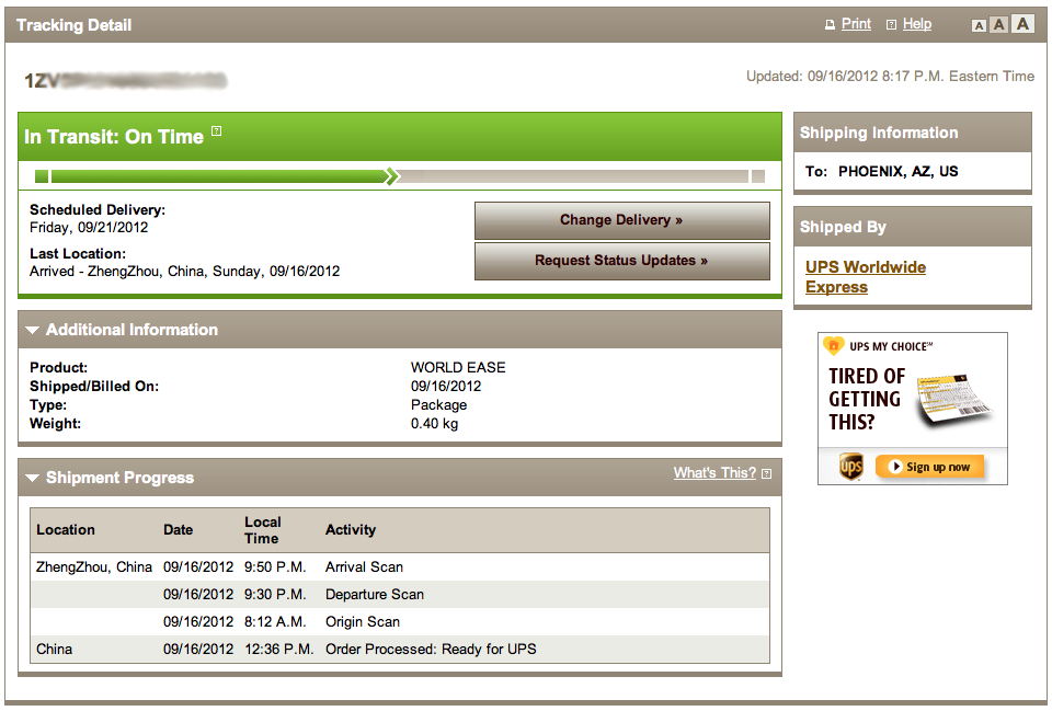 Has anyone ordering from Canada (and 'Preparing for Shipment') been able to track their phone through a reference number on UPS? Doesn't seem to work for me. Shipping to Toronto.