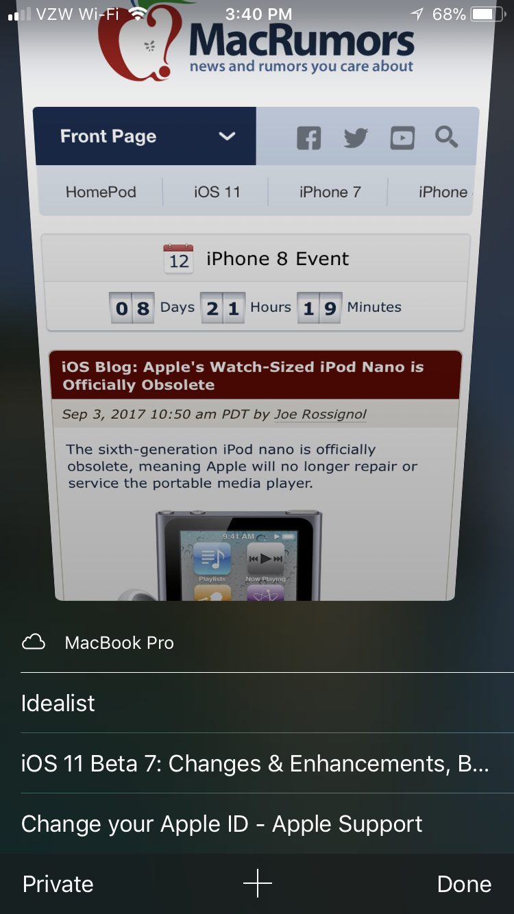 When accessing tab view in Safari (on my 7, not using handoff), I see these iCloud frequently visited sites from my MacBook Pro: