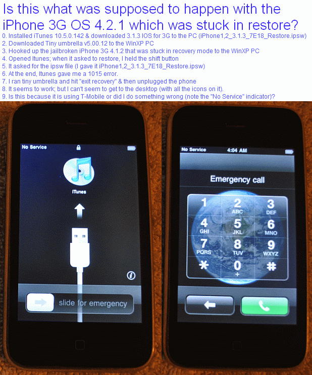 iPhone 3G 3.1.3 BB 06.15.00 STUCK IN EMERGENCY MODE: