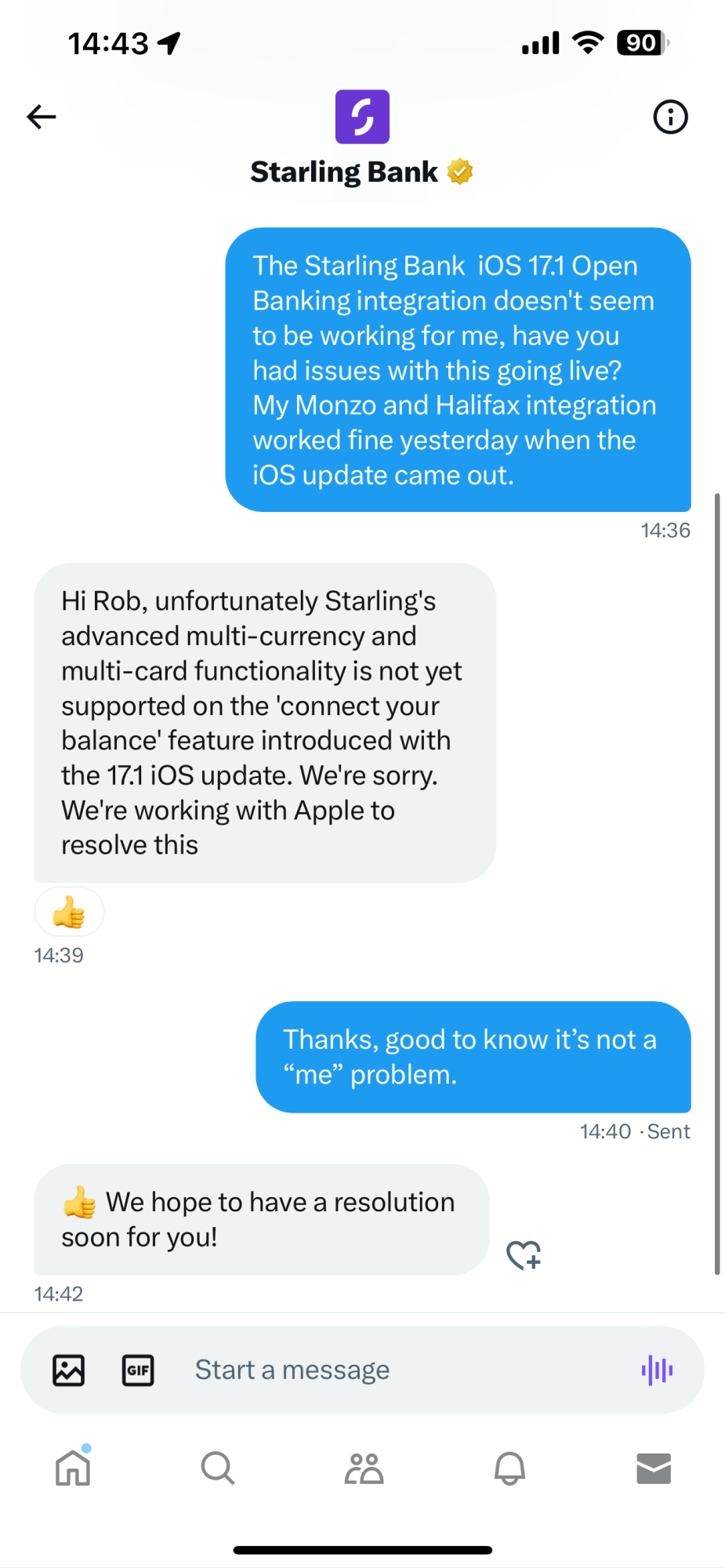 I do have a second account with them for euros too, so they could be alluding to that perhaps but my main account is a standard one.Is this just a “normal” Starling account? Mine isn’t working either but the way Starling worded their reply to you I am not sure if you have some super special card 🤣