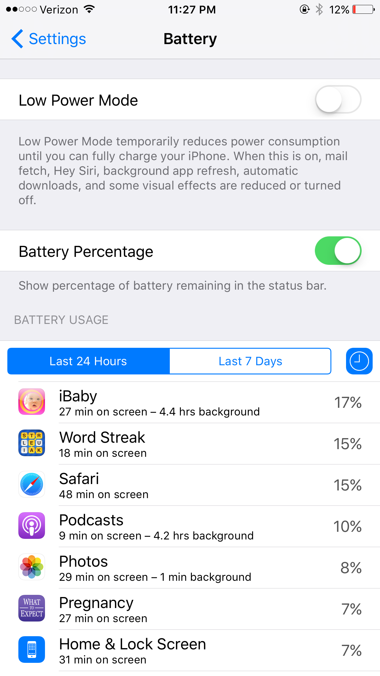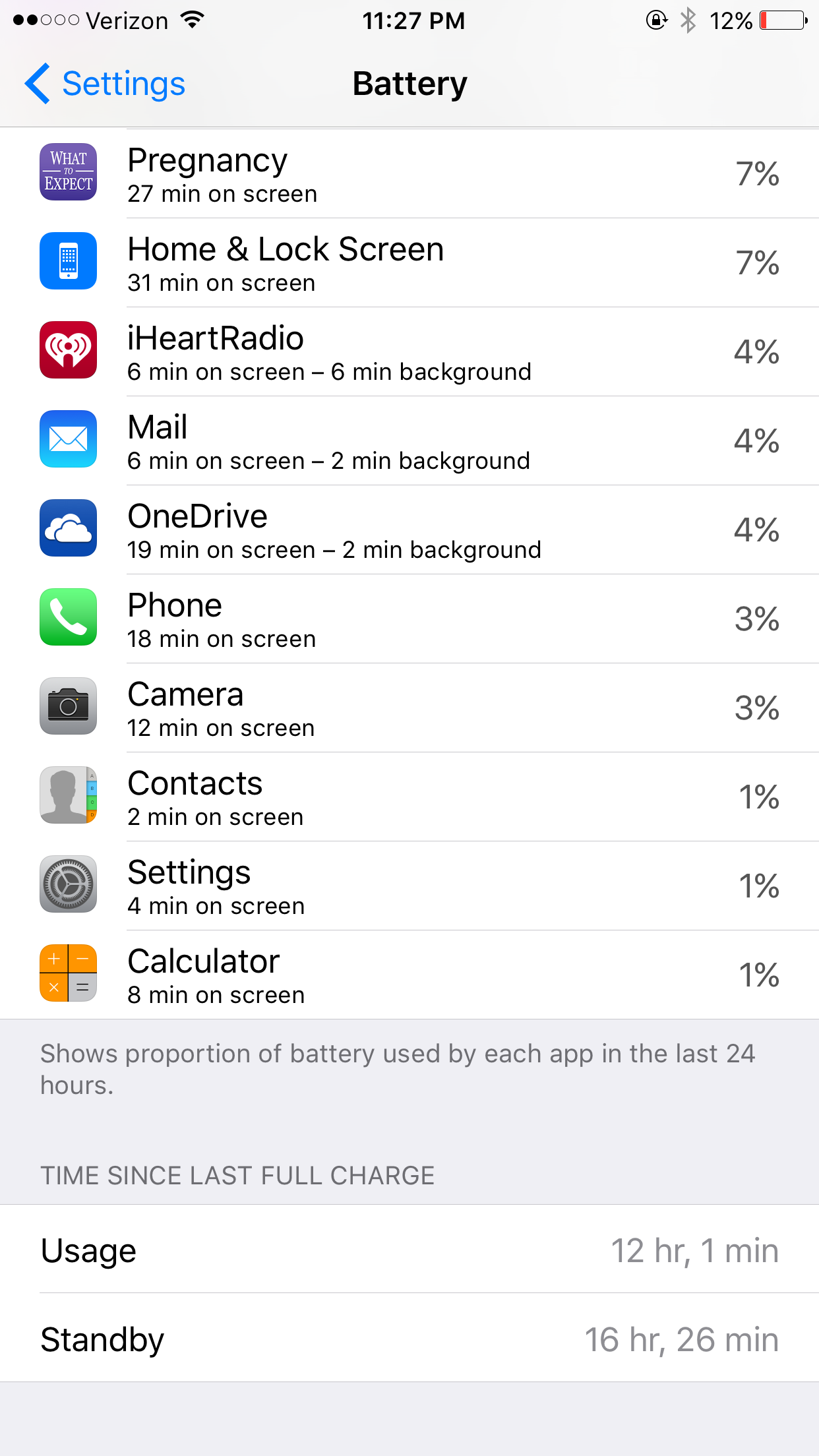 Here are my stats from today. Not too bad. I know it says that the phone's been plugged in. It was, but only for few minutes when I plugged into my MBP to transfer a file. It was connected long enough for the charge to go up by 5%.