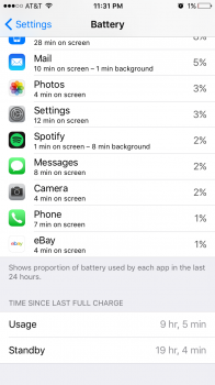 When you charge in this method do you do it with the phone off or on?Calibrate your battery meter correctly.. Let phone go all the way to shutoff.. Then full charge to 2 hours beyond it showing 100%.. Then run a typical usage day again - those numbers will improve. Promise. The partial charge they put on at the factory isn't a true test of battery life.