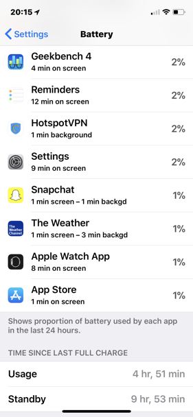 Safari does use a lot of battery I agree! But your battery life is solid! You were hitting 10 hours of usage easily what happened?Yesterday I got 8h 37m Usage and 17h 14m Standby before hitting 21% on my X by bedtime, which dropped to 20% while taking the three screenshots below. I used the phone a good bit during the day for Surfing, Kindle, Phone calls, and messages/email.