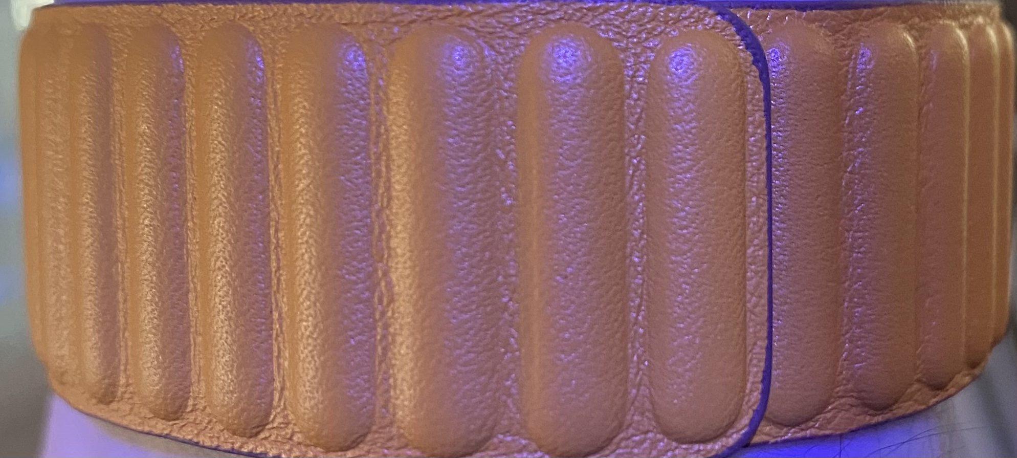 That’s not where the poppy paint ends, it’s where the side paint begins. Most leather has a PU “painted” finish on all ends to bind them together and make them resistant to wear and separation. This band is a marvel of “leather” work, and absolutely benefits from this PU side paint/glue/binding.That’s definitely the case. In fact, you can see on mine where the paint ends.