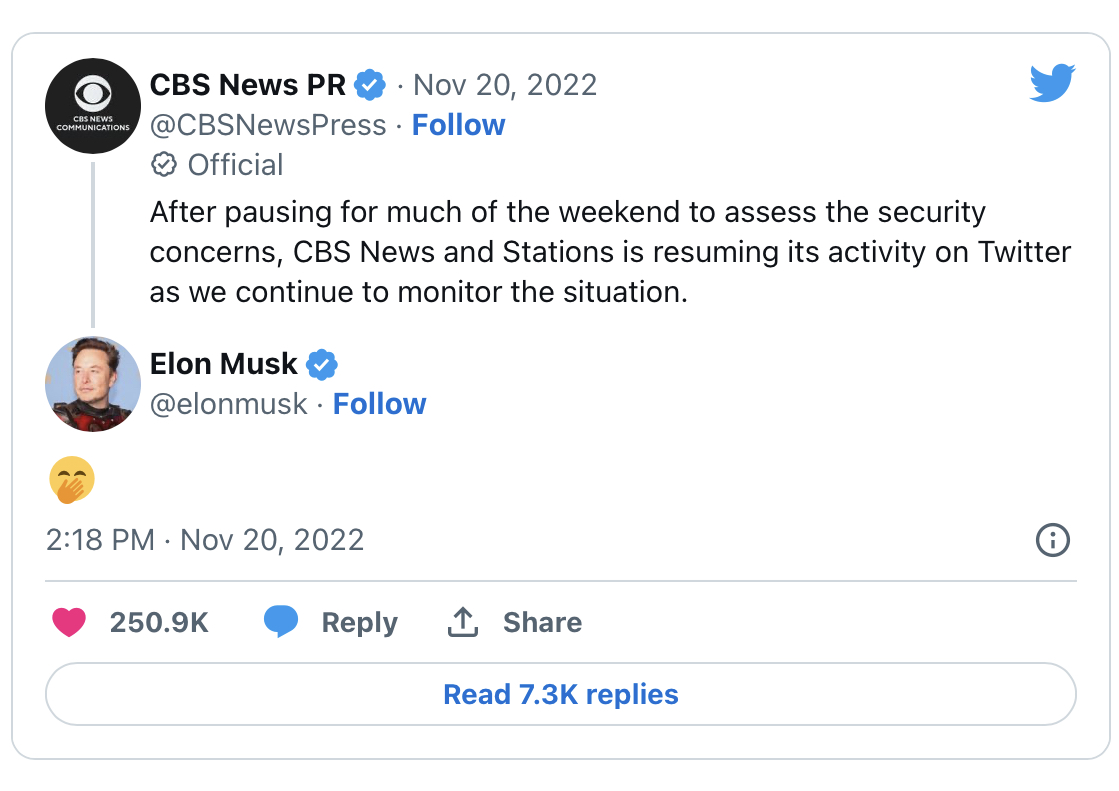 There’s a difference between Twitter account and an Twitter advertiser. None of the advertisers have returned. And, those that continued to advertise in the vacuum… saw their ads run alongside content they’d rather not be associated with and they, too, eventually pulled.