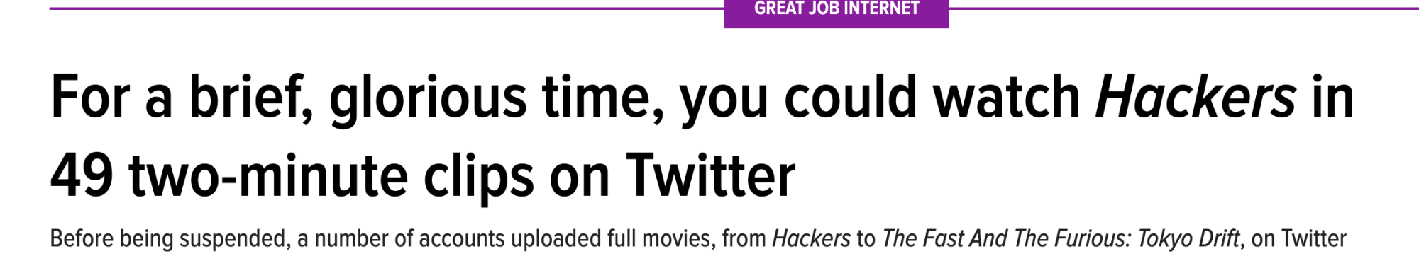 then let's level set here...these were 49 2 minute clips. Who would want to watch that?