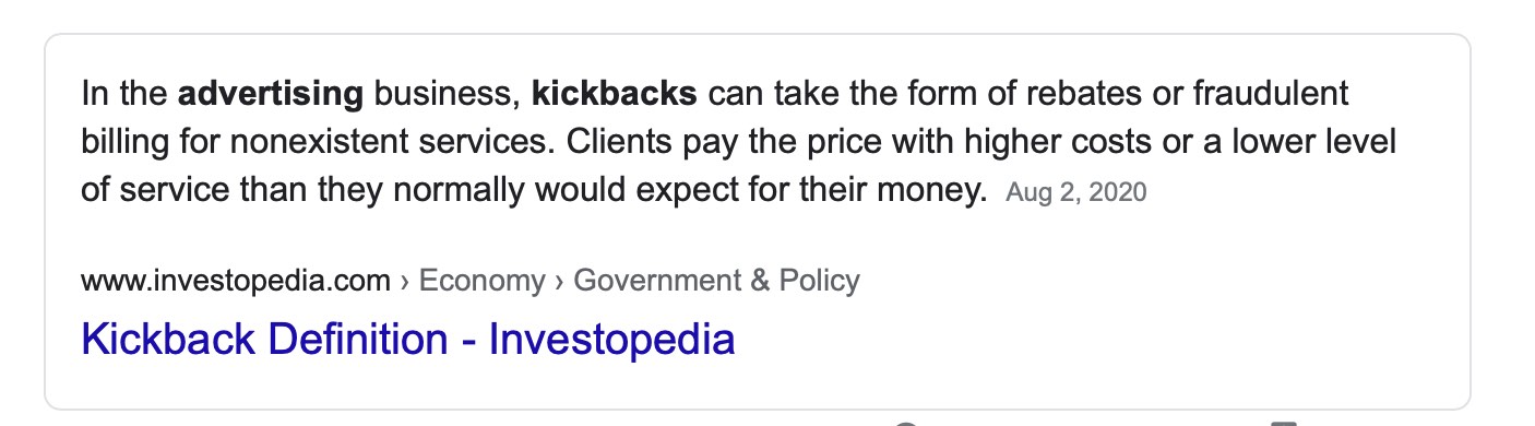 "kickback" might not be the name you like, but that's what it is.