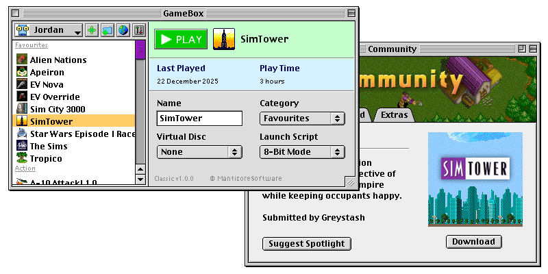 After realising how difficult it was for my kids to get into vintage Mac gaming with having to deal virtual CDs, resolution/bit-depth changes and other quirks, I built an application to make the process more straight forward.