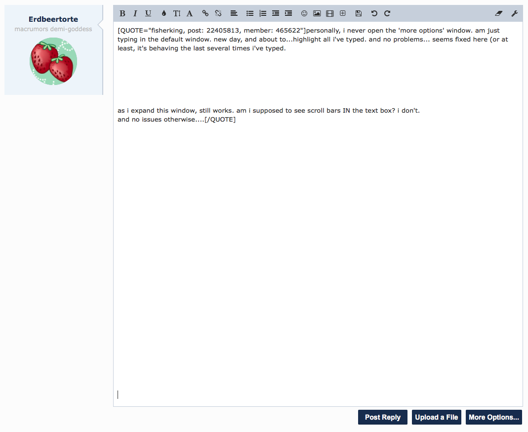 let's see...am entering text. now i will highlight the text i entered... no weirdness! fixed? hopefully (and thank you btw). nothing i am trying is causing the page jumping. will remain optimistic.![]()