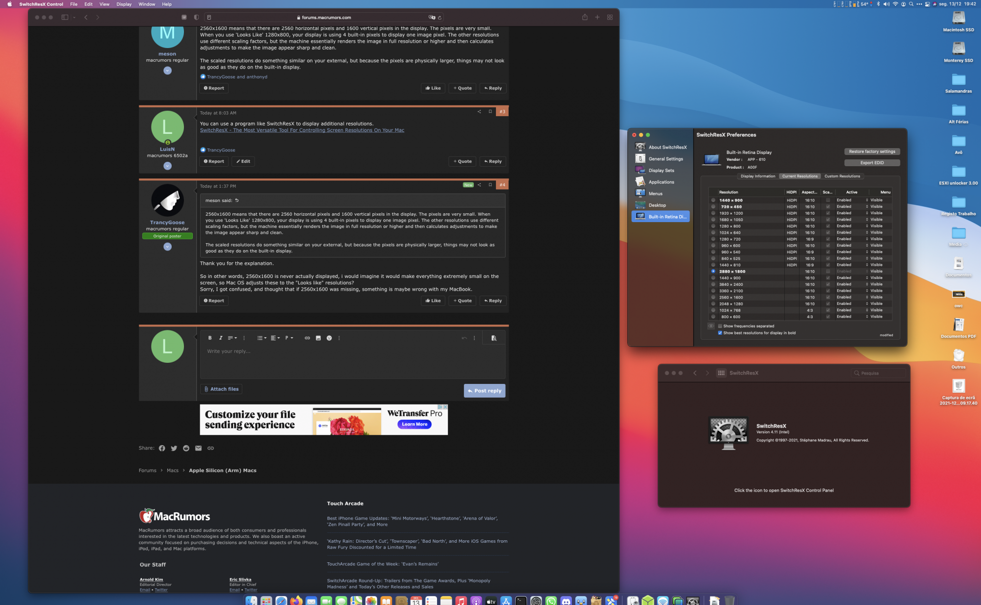 On the External BenQ monitor I get all kind's of resolutions 1920x1080, 2K, some 3008x1692 and the regular 4K that makes everything crazy small.