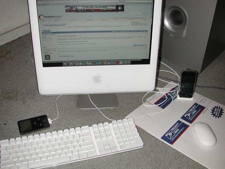 Ok I told you guys I was going to wait on the iMac until I can afford my dream PC an iMac 24" C2E but anyways... I ran across an ad on craigslist.. 17" 2.0 Ghz C2D ,1GB ,Wireless keyboard + Mighty Mouse for $575... I couldn't refuse so I bought it and I am booting it up now as I am typing this on my Dell PC...