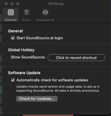 I have a process running, Soundsource, it is not an app but is installed as a program in macOS. Soundsource provides you with complete control over any application you have that deals with audio. It is part of a package published by Roque Amoeba used by podcasters. I only use the audio software. To install it you have to go into the security settings found in the Safe Boot screen, and install ARK (Audio Routing Kit) This enables Soundsource to work. Soundsource does not show up in the Launchpad. It does not appear the forced stop screen so when it hangs only a restart will clear it. The problem with the Mac hanging was caused by not having the updated ARK for Sequoia installed. RA had the updated ARK but I did not install it correctly. In Soundsource's settings you can check for updates it is from this screen you update. I did so and with a restart everything is now running like I would expect. In Windows this would have all been handled by an install wizard. Soundsource is a really great thing to have. Individual control of each audio source you have, each with their own master volume control, each with their own graphic equalizer, plus other audio effects used by podcasters, and you can assign each to their own output.