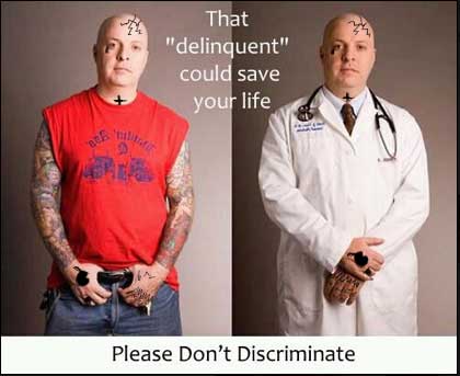 Note that his tattoos are hidden at work. Looks a lot different when he has hand and face tattoos: