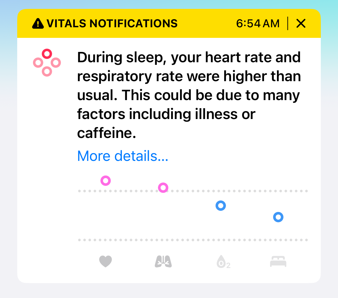 On top of that, my health app on my iPhone gave me a second warning that my vitals went haywire because of this. It’s strange because my blood oxygen levels were normal, but the other day when I first got the alert, they were even worse when I got the nasty cold.