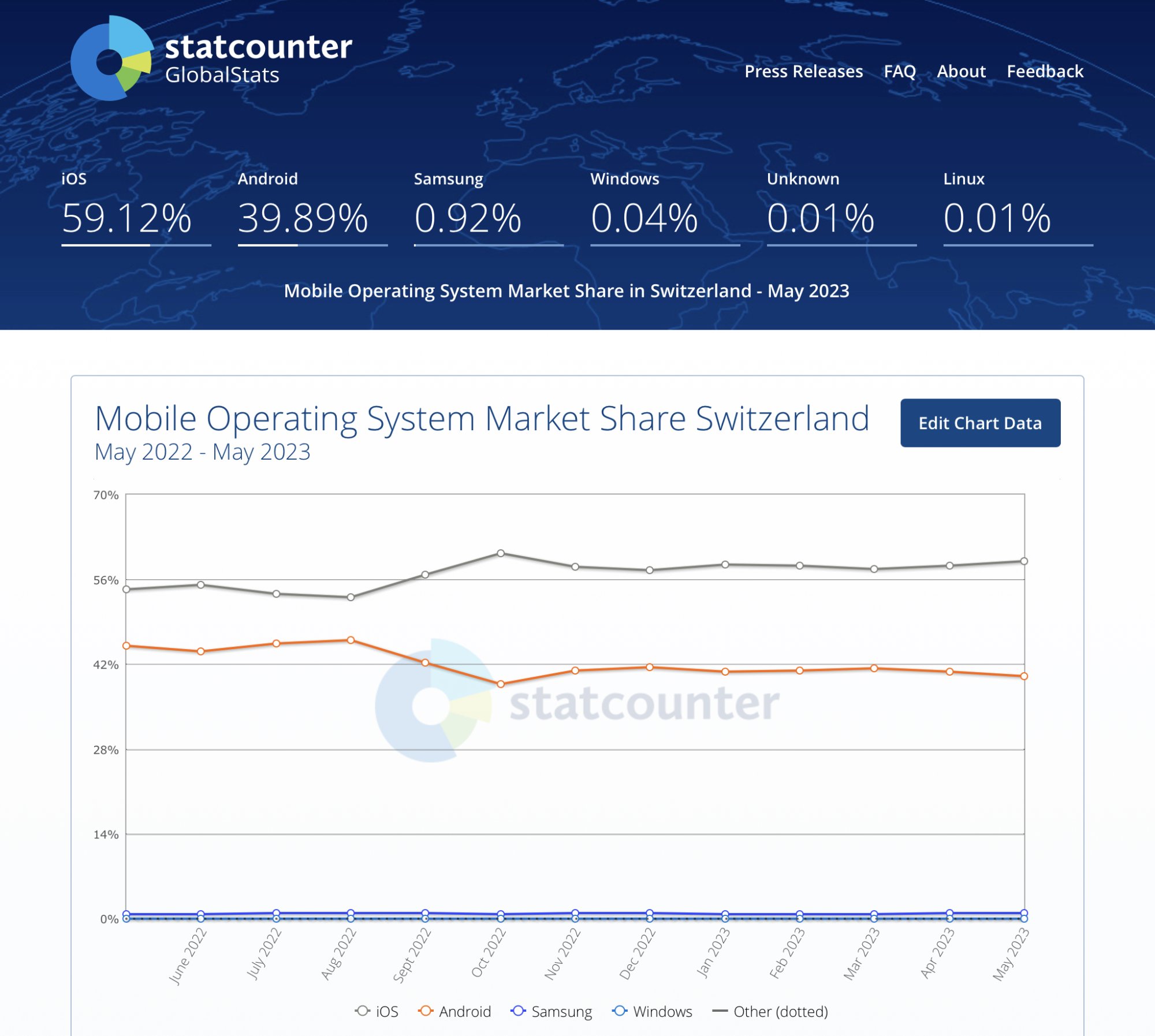 I didn't state what you wrote, so I'm not sure what to reply. I said, if you go back, that iPhones are rarer (a comparative, different from rare) in Europe (not Switzerland) compared to the US, and I stand by that, according to all available data.It was just that some of your reasoning didn‘t make sense. Stating that iPhones are „rare“ in Europe, and especially in Switzerland, is not a „personal take“ but simply wrong.